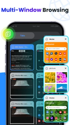 - Browse privately: Use private tabs to go incognito anywhere on the internet without leaving a trace on your device.