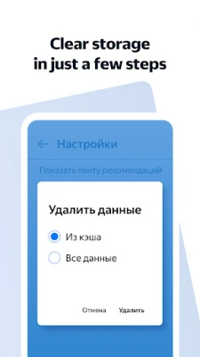 With Yandex Browser Lite you can: - Browse quickly, and save on your phone’s battery power and storage. - Find what sites you need or ask Yandex questions with the SmartBox search bar. - Go to your most visited sites from visual bookmarks from your main screen’s Tableau. Low on storage space on your smartphone? - Easily clear the cache and cookies right in Settings. - Store Yandex Browser Lite on either your memory card or your device.