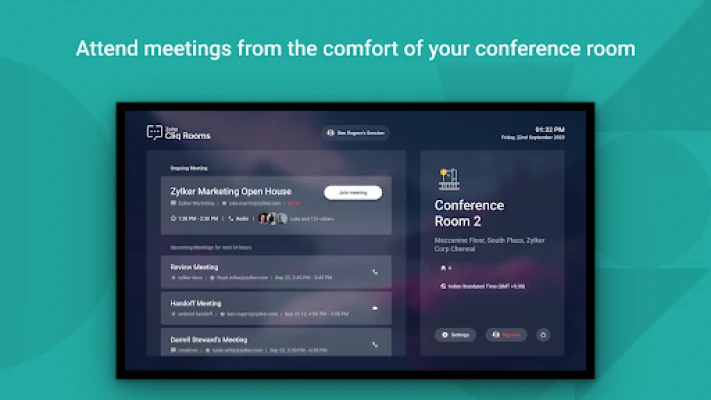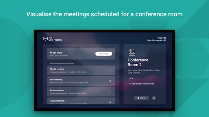 Evolve the conference rooms in your office into smart rooms with the Cliq Rooms for TV. Cliq Rooms, allows you to initiate and join, audio and video meetings from the conference room with an android tv. Use the big screen of your tv to effectively collaborate with upto 1000 colleagues that are working remote or in a different work location, right from your office conference room.