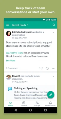 Organize teams into groups, discuss and share ideas in real-time, and work together. You can create groups based on departments, projects, or to discuss common topics.