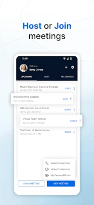 Stay connected on the go! Host or join a secure online meeting with up to 250 participants and collaborate with audio, video and screen sharing. Attend live webinars, participate in polls interact with organizers using Q&A, and "raise hand" and talk during the webinar on organizer's approval.